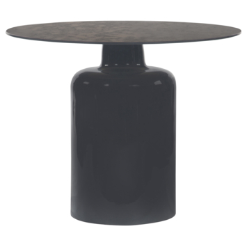 Deze stijlvolle bijzettafel Khloe (øxh) 45x35cm heeft een antiek glazen blad en een metalen onderstel met een retro zwarte emaille afwerking.