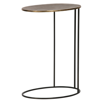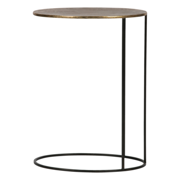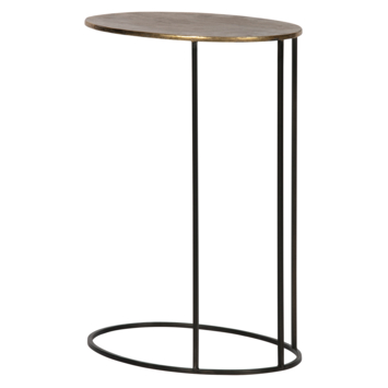 Slanke bijzettafel. Staal voorzien van een antique brass finish. Afmetingen (hxbxd): 55 x 30 x 40 cm