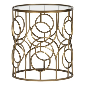 Met de Naomi bijzettafel van WOOOD ben je weer helemaal hip als het op bijzettafels aankomt. Het unieke geometrische metalen frame heeft een antique brass afwerking. Dit, in combinatie met het glazen plateau, geeft deze bijzettafel klasse en stijl.