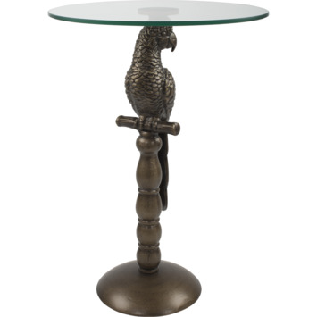 De Papagayo bijzettafel valt echt op in je interieur. De bijzettafel is voorzien van een 8mm dik glazen tafelblad. Afmeting (øxh) 40x55 cm.