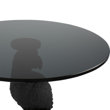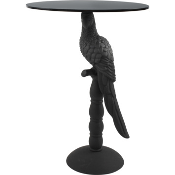 De Papagayo bijzettafel valt echt op in je interieur. De bijzettafel is voorzien van een 8mm dik glazen tafelblad. Afmeting (øxh) 40x55 cm.