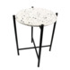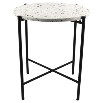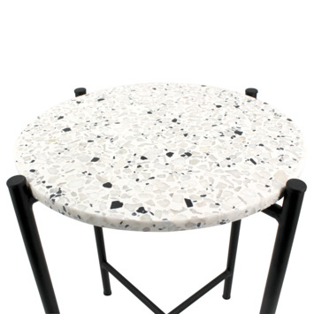 Een heerlijk praktisch bijzettafeltje met een terrazzo tafelblad. Door zijn afmeting is er in ieder interieur wel een plekje voor te vinden. De kleur is multi. De afmetingen zijn (HxDØ) 46x43,5 cm.