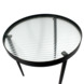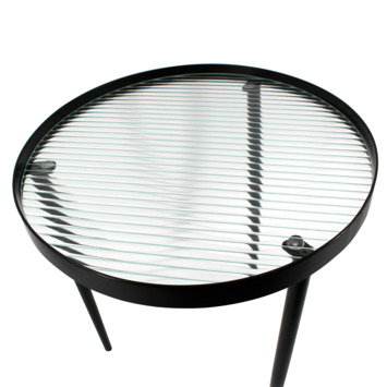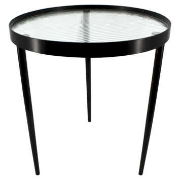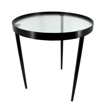 Iedere accessoire verdient een podium. Dat podium biedt Tibbe. Een bijzettafel met een metalenframe en daarin een glasplaat. De afmetingen zijn (HxDØ) 46x40 cm.