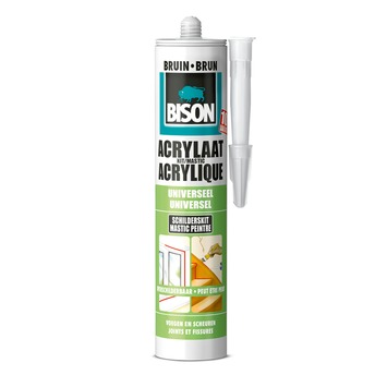 De Bison Acrylaatkit Bruin Koker 310 ml is een gemakkelijk verwerkbare, al na 30 minuten overschilderbare, voegkit voor het afdichten van voegen, naden, kieren en scheuren. Deze Bison Acrylaatkit Bruin koker 310 ml is zowel binnen als buiten uitstekend toepasbaar.