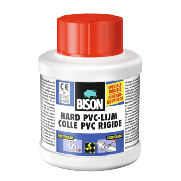 Bison hard pvc lijm pot 250 ml hard pvc lijm met komo-keur. Voor afvoerbuizen, hulpstukken en goten van hard pvc met nauwe passing. Nastelbaar. Met kwast.