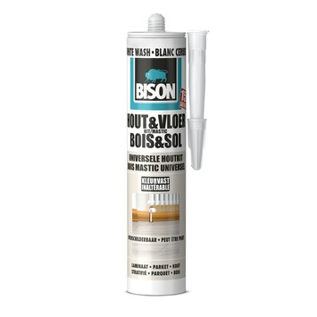 Bison Hout&Vloer White Wash Koker 300 ml Hoogwaardige, kleur specifieke afdichtingskit voor aansluitvoegen bij parket, laminaat, planken, kurken, linoleum en PVC vloeren. Tevens uitermate geschikt voor het opvullen van aansluitvoegen naar vloer- en wandplinten, dorpels en andere bouwonderdelen.