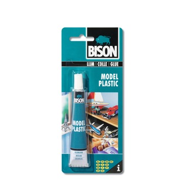 Bison Model Plastic Kaart 25 ml Modelbouwlijm voor het verlijmen van polystyreen modelbouwobjecten, zoals auto's, vliegtuigen, huizen en boten. Kleurloos, sterk en waterbestendig.