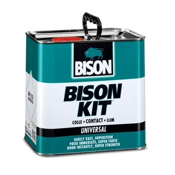 Bison Kit® Blik 2,5 l Super sterke, vloeibare, universele contactlijm. Lijmt plastic bekledingsplaat (zoals Formica®), fineer, board, plastic randen, rubber, leer, linoleum, kurk, textiel of polyetherschuim zowel onderling als op hout, spaanplaat, beton en metaal. Zeer geschikt voor o.a. het lijmen van trapranden, vloerbedekking op trappen, dopjes of viltjes onder meubels. Ook voor reparaties aan bijvoorbeeld schoenen, tassen, speelgoed, tapijt, of bij het maken van (hobby) knutselwerken.