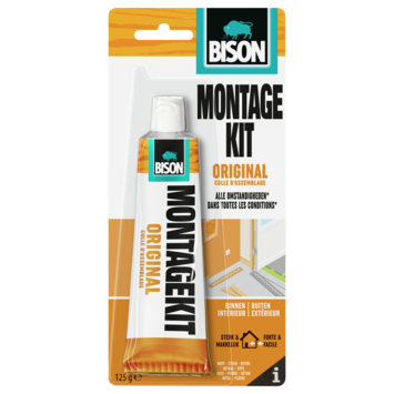 Bison montagekit original tube 125 g extra sterke, universele, vullende montagelijm. Voor het eenvoudig en muurvast bevestigen van o.a. Hout, kunststof, metaal, steen, gips en tegels op allerlei ondergronden zoals beton, steen, pleisterwerk, hout, spaanplaat, metaal en kunststof. Zowel binnen als buiten toepasbaar en geschikt voor het bevestigen van materialen onder spanning. Blijvend elastisch. Spijkers en schroeven overbodig.