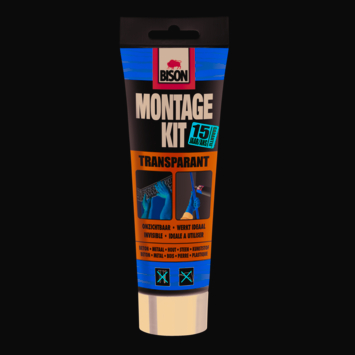 Bison montagekit transparant hangtube 250 gr transparante, sterke, oplosmiddelvrije montagelijm. Voor het onzichtbaar en muurvast bevestigen van o.a. Hout, kunststof, metaal, steen, gips, tegels en piepschuim op poreuze ondergronden zoals beton, steen, pleisterwerk, hout en spaanplaat. Blijvend elastisch en vullend. Spijkers en schroeven overbodig.