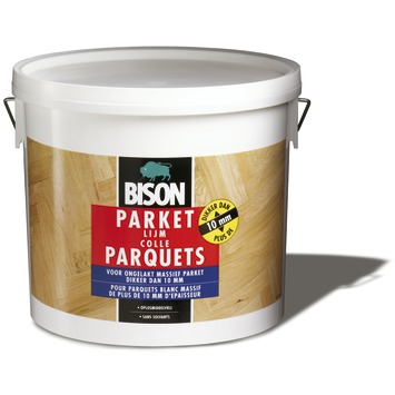 Lijm voor ongelakt massief houten parket dikker dan 10 mm. Makkelijk verwerkbaar. Corrigeerbaar. Oplosmiddelvrij. Geschikt voor ongelakte massief houten parketsoorten (mozaïek-, lamel-, woodblock-, massief strokenparket) met een minimale dikte van 10 mm. op ondergronden van beton, cement, estrich, hout, spaanplaat en board. Ook geschikt voor vloeren met vloerverwarming.