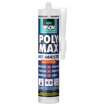 Bison Poly Max afdichtingskit Kit-Mastic alle voegen transparant 280 ml is een veelzijdige, blijvend elastische afdichtingskit die overschilderbaar en schimmelbestendig is. Deze kit kan acryl-, siliconen- en PU-afdichtingskit vervangen, waardoor het een universele oplossing biedt voor al je afdichtingsbehoeften. Geschikt voor het waterdicht afdichten van voegen en naden in sanitaire ruimtes, zoals douchecabines, badkuipen, wastafels en toiletten, en tussen tegelwanden. Het hecht uitstekend op diverse kunststoffen, glas, tegels, metaal en hout, en is ideaal voor keukentoepassingen zoals aanrechtbladen en spoelbakken. Ook perfect voor sterk bewegende voegen en constructiescheuren.