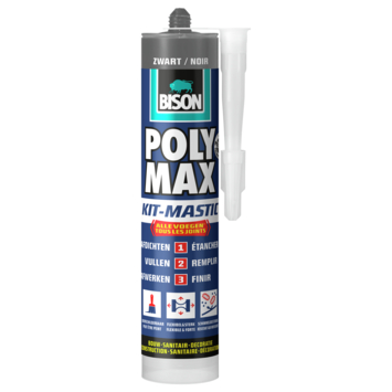 Bison Poly Max afdichtingskit Kit-Mastic alle voegen zwart 280 ml is een veelzijdige, blijvend elastische afdichtingskit die overschilderbaar en schimmelbestendig is. Deze kit kan acryl-, siliconen- en PU-afdichtingskit vervangen, waardoor het een universele oplossing biedt voor al je afdichtingsbehoeften. Geschikt voor het waterdicht afdichten van voegen en naden in sanitaire ruimtes, zoals douchecabines, badkuipen, wastafels en toiletten, en tussen tegelwanden. Het hecht uitstekend op diverse kunststoffen, glas, tegels, metaal en hout, en is ideaal voor keukentoepassingen zoals aanrechtbladen en spoelbakken. Ook perfect voor sterk bewegende voegen en constructiescheuren.