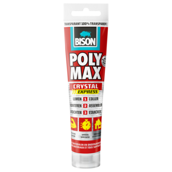 Bison Poly Max® crystal hangtube 90 g universele, kristalheldere montagelijm en afdichtingskit op basis van unieke smp technologie. Voor het lijmen, monteren en afdichten van vrijwel alle (bouw)materialen op vrijwel alle ondergronden (glad, poreus, niet-poreus en licht vochtig). Kristalhelder. Extra sterk. Blijvend elastisch.