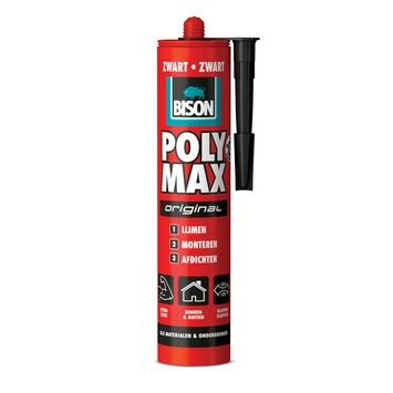 Poly Max® Original Zwart Koker 425 g Universele, hoogwaardige montagelijm en afdichtingskit op basis van unieke SMP technologie. Voor het lijmen, monteren en afdichten van vrijwel alle (bouw)materialen op vrijwel alle ondergronden (zowel gladde, poreuze als niet-poreuze ondergronden). Binnen en buiten toepasbaar. Extra sterk. Blijvend elastisch.