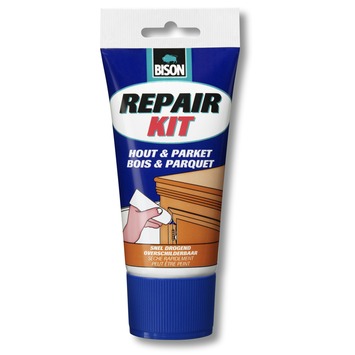 Bison Repair Kit Hout & Parket Tube 230 g Gebruiksklaar reparatiemiddel voor alle houtsoorten. Voor snelle en eenvoudige reparatie van beschadigingen, gaten, scheuren, naden en kieren in alle houtsoorten, zowel binnen als buiten.