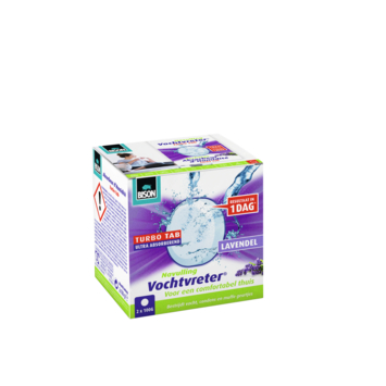 Deze BISON VOCHTVRETER AMB.TAB LAV. 100GR is ideaal tegen overtollig vocht. De vochtvreter bestrijdt vocht, condens & muffe luchtjes, hiermee wordt schimmelvorming en een slechte luchtkwaliteit tegen gegaan.