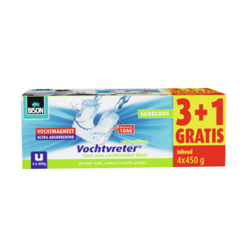 Deze Bison vochtvreter ambiance magnet 3+1 is ideaal tegen overtollig vocht. De vochtvreter bestrijdt vocht, condens & muffe luchtjes, hiermee wordt schimmelvorming en een slechte luchtkwaliteit tegen gegaan.