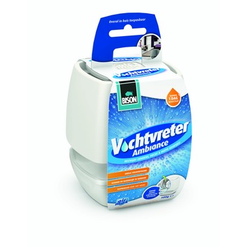 Bison vochtvreter® Ambiance neutral white 100 g bestrijdt condens, vocht en muffe geurtjes in de leefruimte. Optimale vochtopname dankzij uniek luchtcirculatiesysteem. Uitermate geschikt voor gebruik in de woonkamer, slaapkamer, badkamer, toilet, etc.