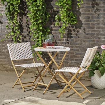 Creëer een gezellige en moderne sfeer in je tuin of op je balkon met de bistroset Bellano. Deze stijlvolle set bestaat uit twee inklapbare stoelen en een ronde tafel, uitgevoerd in een mooie combinatie van wit en bruin. Het stevige wicker in combinatie met het metalen frame maakt de set niet alleen stijlvol, maar ook robuust en geschikt voor het buitenleven.