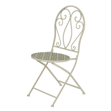 De Madrid tuinstoel is een opvouwbare beige stoel met mozaïekpatroon waarmee je je balkon of terras direct voorziet van een extra zitplek.