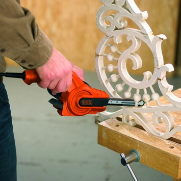 De Black & Decker bandschuurmachine KA900E-QS Powerfile™ met Cyclonic Action stofopvang is ideaal voor schuren, vormen, vijlen, slijpen en het verwijderen van roest. Deze 350 watt sterke Powerfile™ schuurmachine is voorzien van een 13 millimeter smalle schuurarm, waardoor je met gemak op moeilijk bereikbare plekken kunt komen. De variabele snelheid zorgt voor optimale controle en afwerking bij het schuren van hout, metaal, keramische tegels, baksteen, gips en kunststof. De bandspanningsregelknop voorkomt dat de schuurband van de arm loopt tijdens het werk. De Cyclonic Action stofopvang zorgt voor efficiënte stofopvang en een schonere werkomgeving.
