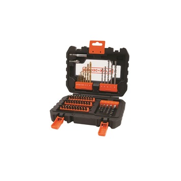 De BLACK+DECKER A7232-XJ is een compacte 50 delige boren-/bitset met de meest courante boren en bits. Zo heb je direct alles bij de hand voor bijna alle boor- en schroefklussen in en rondom huis. De boren en bits zitten in een overzichtelijke koffer. Inhoud: 5 houtboren (3, 4, 5, 6 & 8mm), 5 steenboren (4-8mm), 8 metaalboren (1.5, 2, 2.5, 3, 3.5, 4, 5 ,6), 30 bits 25mm (Ph, Pz, Sl, Torx, Hex), magnetische bithouder.