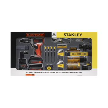 De BLACK+DECKER en Stanley accu boormachine BD001ST050-QW basisset + twee accu's is alles wat je als beginnende klusser nodig hebt om aan de slag te kunnen.