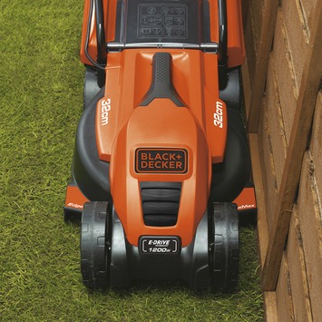 De BLACK+DECKER grasmaaier EMAX32S-QS 1200W 32 centimeter maakt grasmaaien wel heel gemakkelijk. Zo heeft de elektrische grasmaaier een geoptimaliseerde grasopvangbak van 35 liter met vulindicator. Wanneer de indicator aangeeft dat de bak bijna vol zit, kun je met de klep in de opvangbak het gras aanstampen. Daardoor hoef je de opvangbak minder vaak te legen en kun je langer doormaaien. En dankzij de EdgeMax technologie kun je tot zeer dicht langs de grasrand maaien. Dit is ideaal voor maaien langs de muur, bloemperken of gazonranden. Tot slot zorgt de E-Drive innovatie dat het mogelijk is gemakkelijk door nat en hoog gras te maaien.