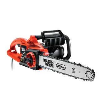 De BLACK+DECKER kettingzaag GK1935T-QS 1900W 35 cm is met een vermogen van 1900 watt een ijzersterkte kettingzaag. De elektrische kettingzaag heeft een zaagblad van 35 centimeter. En met een zaagsnelheid van 9,5 meter per seconde is hij ook nog eens heel snel. Zo zaagt de kettingzaag een stam van 30 centimeter door in 6,5 seconde. De machine heeft een hard, stalen binnenwerk voor een extra lange levensduur. Dankzij het geavanceerde remsysteem stopt de ketting in minder dan 0,15 seconde. Door de rubberen voor- en achterhandgreep heb je tevens een goede controle tijdens het gebruik. Kortom, de BLACK+DECKER kettingzaag GK1935T-QS 1900W 35 cm is een gebruiksvriendelijke en zeer krachtige machine, te gebruiken voor elke zaagklus.