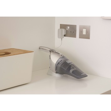 De BLACK+DECKER kruimeldief type NVB220WC-QW staat altijd voor je klaar! Deze snoerloze, oplaadbare handstofzuiger is licht en uiterst wendbaar. De snelleegfunctie bespaart je tijd en voorkomt dat je handen in aanraking komen met het vuil. De doorzichtige opvangbak zorgt ervoor dat je exact weet wanneer deze geleegd moet worden. Bovendien is opvangbak eenvoudig afneembaar en wasbaar zodat je hem grondig en hygiënisch kunt schoonmaken. De NVB220WC-QS heeft een brede zuigmond waardoor groter vuil, zoals bijvoorbeeld ontbijtgranen, met gemak opgezogen kan worden. De lader kan gebruikt worden als tafel- en als wandlader. Je kunt ongeveer 12 minuten non-stop zuigen, dus dat is voldoende voor alle snelle schoonmaakklusjes. Zuigkracht: 18 Air Watts.