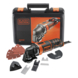 De Black & Decker multitool MT300KA-QS is een veelzijdig gereedschap waarmee je kunt schuren en zagen. De multitool heeft een vermogen van 300 watt en een maximum regelbare toerental van 22.000 per minuut. De accessoires kunnen zonder gereedschap eenvoudig en snel worden verwisseld. De geïntegreerde stofafzuiging zorgt voor een schone werkplek. De softgrip handgreep zorgt voor een comfortabele en stevige grip tijdens het werken. De Black & Decker MT300KA-QS wordt geleverd in een stevige kunststof koffer, inclusief schuurvoet met stofafzuiging, invalzaagblad, segmentzaagblad, stevige schraper, flexibele schraper en schuurvellen (korrel 60, 80 en 120).