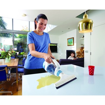 Een hekel aan ramen lappen? Met de BLACK+DECKER Window Washer WW100-QW is het een klusje van niets. Deze snoerloze ruitenreiniger is eenvoudig te gebruiken. Bespaar tijd en geniet van de leuke dingen in het leven. Reinig alle gladde oppervlakken zoals ramen, spiegels, tafels en auto's met dit multifunctioneel, all-in-one toestel. Met één apparaat sproeien, schoonmaken en opzuigen door alleen maar de kop om te draaien. De opvangbak is doorzichtig waardoor het snel duidelijk is wanneer deze vol is en geleegd moet worden. Meer dan 20 minuten werktijd en opgeladen in minder dan 4 uur. Laadindicator licht op tijdens het laden. Te gebruiken met glasreinigers en andere reinigingsproducten. Ideaal voor het opzuigen van water en condensatie op ramen, spiegels en douches. Ook horizontaal te gebruiken op tafels, auto's enz zonder lekken. Met on board sproeier, wasbare microvezeldoek, 280mm zuigmond, micro USB kabel.