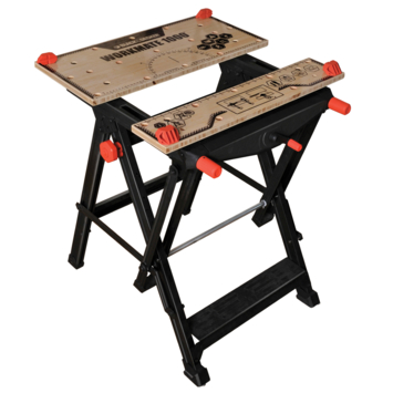 De BLACK+DECKER workmate (wm1000-xj) is een handig stuk gereedschap die zorgt dat al jouw klussen snel en gemakkelijk zullen worden verlopen. De workmate is een opvouwbare werkbank die kan worden gebruikt met verschillende doeleindes. Zo kan die worden gebruikt als zaagbok, schraag of bankschroef. Het stalen onderstel heeft een sterke draagcapaciteit van wel 250 kg. Dankzij het unieke hand klemsysteem kan je de klemplanken apart of tegelijkertijd van elkaar instellen. De werkbank van bamboe heeft een oppervlak van 670 x 1090 x 210 mm. De dubbele klemassen leveren een extra klemkracht wat zorgt dat je deze werkbank voor diverse en zwaardere klussen kan gebruiken. De workmate is inklapbaar en daardoor gemakkelijk op te bergen. De BLACK+DECKER workmate (wm1000-xj) zorgt dat je met gemak en comfort je klussen kan voltooien.
