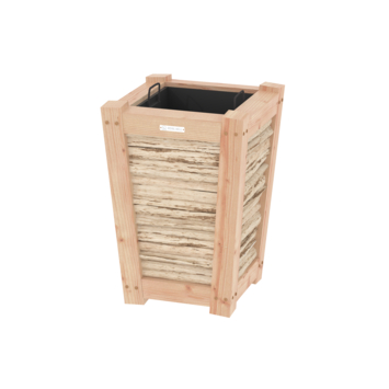 De bloembak Kai 40 x 40 x 60 cm brengt structuur en rust in je buitenruimte. De konische vorm en de mix van vurenhout en hazelaarhout geven de bak een natuurlijke uitstraling die goed past bij verschillende soorten beplanting.