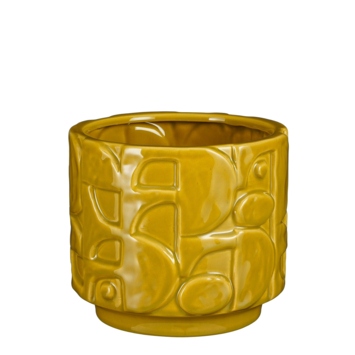 Deze bloempot is werkelijk uniek! Deze prachtige pot is van hoogwaardig keramiek en heeft een glanzende afwerking. Door de verschillende texturen is deze plantenpot echt een statement piece! Plaats hem op een brede bedrand, op de vensterbank of in een open wandkast: hij staat overal mooi! Dit model is geel en heeft een hoogte van 18,5 cm en een diameter van 21 cm en in de pot past een kweekpot van 19 cm.