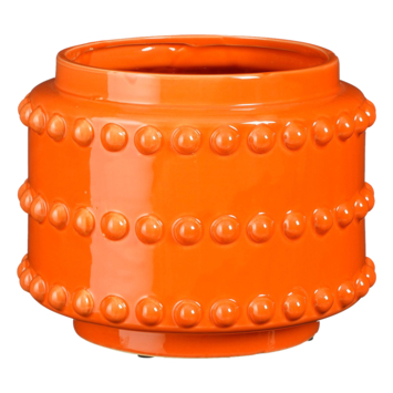 Deze bloempot is een vrolijke en tegelijk een stijlvolle toevoeging aan ieder interieur. De oranje bloempot is gemaakt van stevig keramiek en valt op door de gebobbelde structuur aan de zijkant. De pot voor binnen is 100% handgemaakt en hierdoor uniek, een echte blikvanger! Met een hoogte van 19 cm en een diameter van 22 cm is hij zeer geschikt voor de meeste levende binnenplanten en kunstplanten. Let op: Omdat dit een handgemaakt product is, kan de kleur, maat of vorm bij ieder item iets afwijken. Daarnaast zijn keramieken potten poreus en nooit 100% waterdicht. Wij raden daarom aan een schotel of plastic binnenpot te gebruiken.
