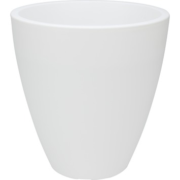 De bloempot kunststof wit 41x39 cm is een mooie kunststof witte bloempot van 41 centimeter hoog en heeft een diameter van 39 centimeter.