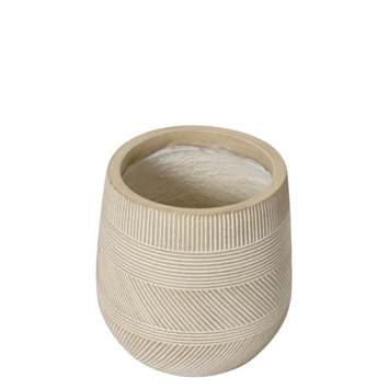 Klein formaat, groot effect. Deze bloempot van Ø 21 cm combineert een warme bruine kleur met verfijnde zandkleurige strepen voor een rustige, natuurlijke uitstraling. De pot is gemaakt van licht en stevig polymeer en voorzien van een afwateringsgat, waardoor hij ideaal is voor kamerplanten of kruiden op je balkon. Dankzij de stevige afwerking kan deze pot prima tegen regen en staat hij net zo goed binnen als buiten.