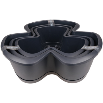 Creëer in een handomdraai een opvallend groenaccent met de Respana Trio bloempot. Dankzij de slimme cascade-opstelling van drie potten bouw je eenvoudig een speelse plantenwaterval, perfect voor kruiden, bloemen of hangplanten. Je plaatst ze binnen op een vensterbank of buiten op het terras en geniet direct van het effect. De potten hebben een totale inhoud van 28,1 liter en bieden voldoende ruimte voor verschillende soorten beplanting. Ze zijn gemaakt van hoogwaardig kunststof dat UV-bestendig is, waardoor de kleur ook bij buitengebruik mooi blijft. Met een diameter van 47 cm en een hoogte van 40,5 cm vormt de Respana Trio een stabiele basis voor jouw planten. De installatie is eenvoudig en de onderzetter met zelfsluitend systeem maakt water geven zorgeloos.