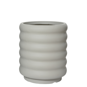 De Tess bloempot van Ø 32 cm heeft een opvallende golfvormige buitenkant die een speels en natuurlijk effect geeft. De zachte rondingen vangen het licht op een mooie manier, terwijl de lichtgrijze kleur zorgt voor een rustige, moderne uitstraling. Gemaakt van fibreclay is de pot stevig én licht in gewicht. Dankzij het afwateringsgat is deze pot geschikt voor echte planten en kun je 'm zonder problemen binnen of buiten neerzetten.
