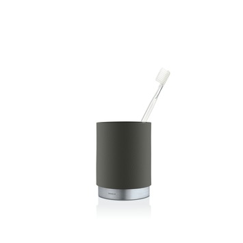 Deze tandenborstelbeker van de badkamerserie Ara heeft een stoere uitstraling. De beker heeft een voet van roestvrij staal en heeft een onderkant van rubber. De bovenkant van de beker is van grijs polystone waardoor de stoere uitstraling zich goed uit.