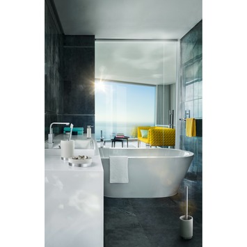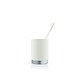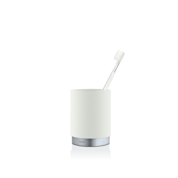 Deze tandenborstelbeker van de badkamerserie Ara heeft een stoere uitstraling. De beker heeft een voet van roestvrij staal en heeft een onderkant van rubber. De bovenkant van de beker is van wit polystone waardoor de stoere uitstraling zich goed uit.