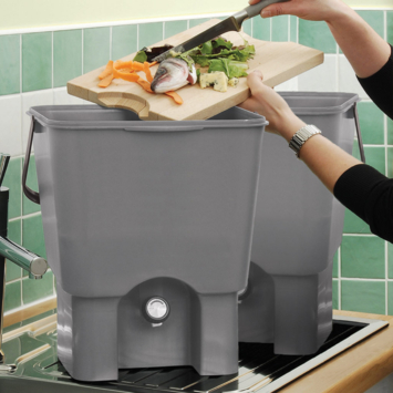 - Bestaat uit: 2x Composter met deksel, tap, zeef, schep en 1kg bokashi