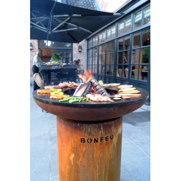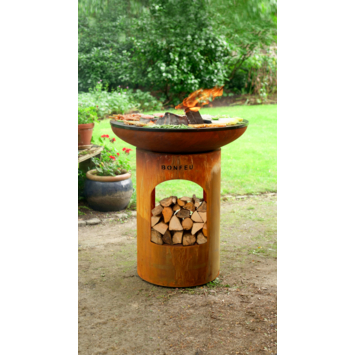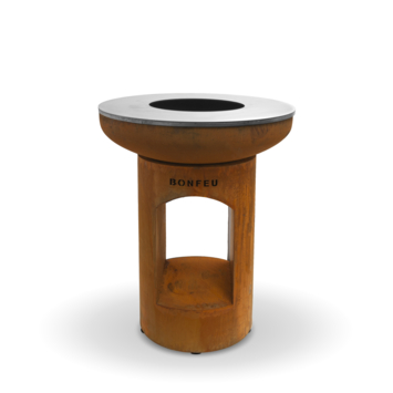 De BonBiza rust open is een stevige terrashaard van metaal met een diameter van 80 cm. Je gebruikt hem om te grillen en plancha bakken, zodat je verschillende gerechten tegelijk klaarmaakt. Dankzij de ingebouwde houtopslag in de sokkel heb je altijd brandhout binnen handbereik. Zo houd je het vuur snel aan en hoef je niet steeds hout te pakken tijdens het koken. De buitenkeuken heeft een afmeting van 100 cm hoog, 80 cm breed en 45 cm diep. Door het robuuste ontwerp staat hij stevig en veilig in je tuin. Met dit product bereid je eenvoudig maaltijden buiten, terwijl je samen bent met vrienden of familie.
