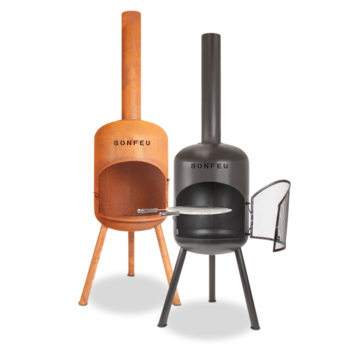 De BonBono Roest is een 165 cm hoge tuinhaard met een doorsnee van 45 cm. De compacte tuinhaard is ook te gebruiken als barbecue, doordat er bij het product een BBQ-grill en een pook wordt bijgeleverd. De haard is voorzien van 3 verstelbare poten met een brede basis voor optimale stabiliteit, evenals een handig vonkenscherm. Daarnaast is het logo van BonFeu aan de voorkant uitgesneden, wat mooi zichtbaar is in het vuur. Het product is beschikbaar in het zwart en in roest. De BonBono is de grotere versie van de BonSolo.