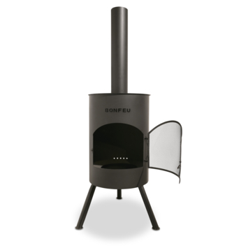 De BonTon 50 Zwart is een 172 cm hoge tuinhaard met een doorsnee van 50 cm. De tuinhaard is voorzien van een aslade, houtblokrooster en pook om optimaal te kunnen stoken. De haard is voorzien van 3 poten met een brede basis voor optimale stabiliteit, evenals een handig vonkenscherm. Daarnaast is het logo van BonFeu aan de voorkant uitgesneden, wat mooi zichtbaar is in het vuur. Het product is beschikbaar in het zwart. De BonTon 50 is de middelste van de drie van de reeks BonTons.