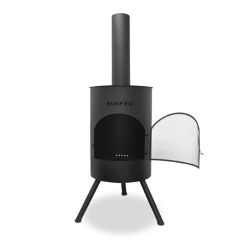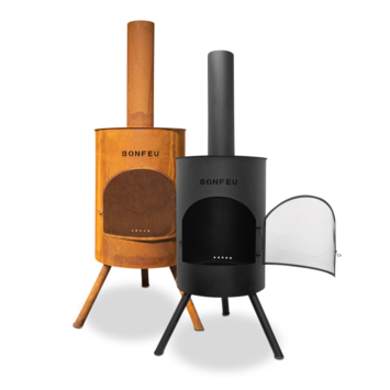 De BonTon 60 Zwart is een 195 cm hoge tuinhaard met een doorsnee van 60 cm. Deze enorme tuinhaard is voorzien van een aslade, houtblokrooster en pook om optimaal te kunnen stoken. De haard is voorzien van 3 poten met een brede basis voor optimale stabiliteit, evenals een handig vonkenscherm. Daarnaast is het logo van BonFeu aan de voorkant uitgesneden, wat mooi zichtbaar is in het vuur. Het product is beschikbaar in het zwart en in roest. De BonTon 60 is de grootste van de drie van de reeks BonTons.