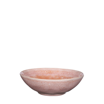Rustiek en robuust; zo moet het servies omschreven worden. Geen wit porselein met saaie volmaakte lijnen, maar handgemaakte producten in neutrale tinten. Elk met een eigen, authentieke look die past bij puur genieten. Dat geldt ook voor deze schaal met een diameter van 14 cm. Ideaal om eten op te serveren. De keramieken schaal kan in de magnetron worden opgewarmd tot 180°C en na gebruik in de vaatwasser worden gezet. Door de roze kleur past de schaal goed bij andere serviesstukken. Of combineer hem met andere artikelen uit de serie en maak het servies compleet.