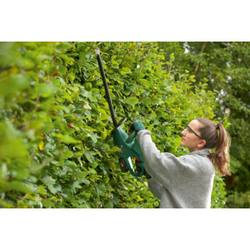 Het innovatieve Bosch Anti-Blocking-systeem zorgt ervoor dat je zonder onderbrekingen kunt blijven snoeien – geen vastlopers meer, gewoon soepel doorwerken. Met een meslengte van 52 cm en een tandafstand van 15 mm is deze accuheggenschaar perfect voor het vormen en onderhouden van jonge of middelgrote hagen. En doordat hij snoerloos werkt, geniet je van maximale bewegingsvrijheid in de tuin.